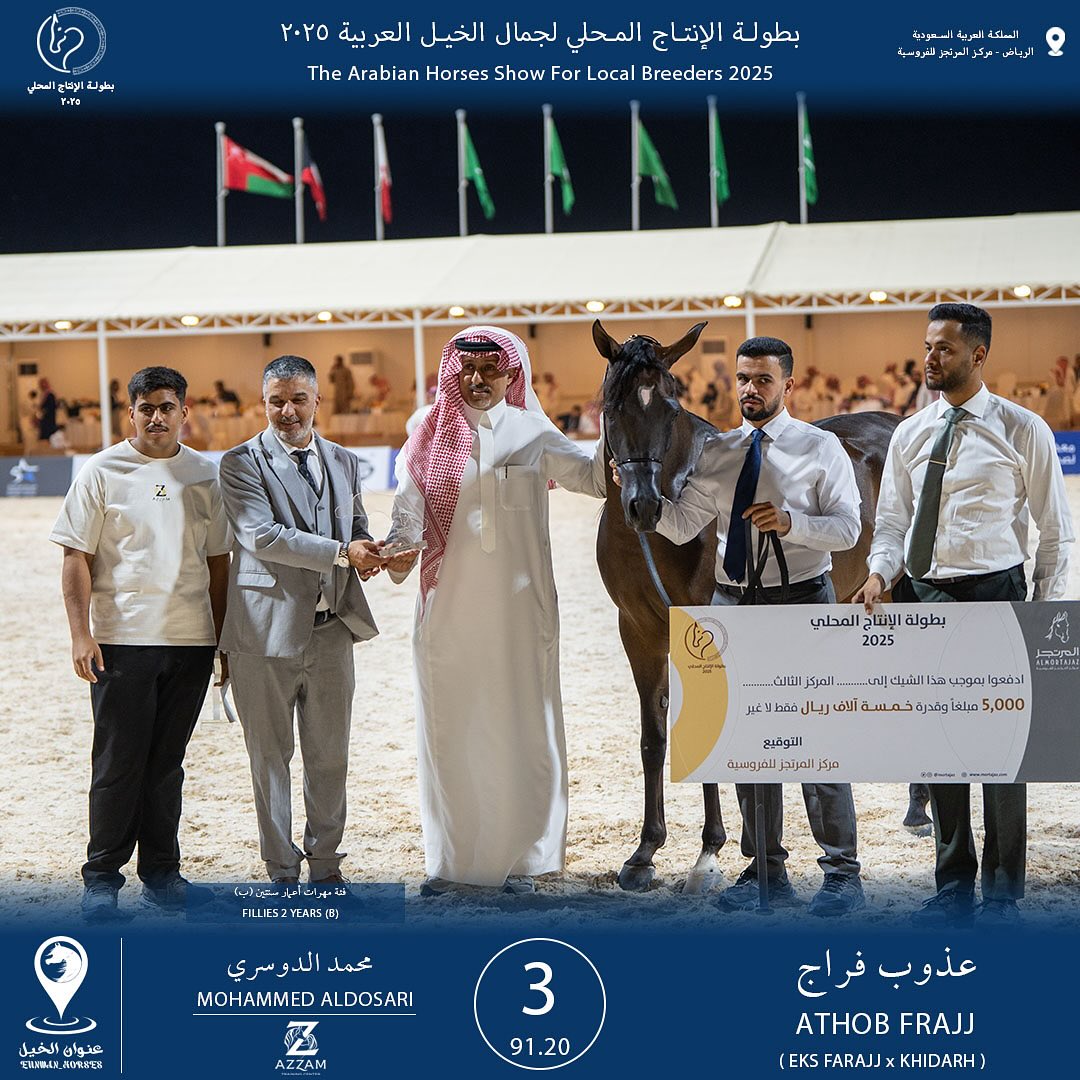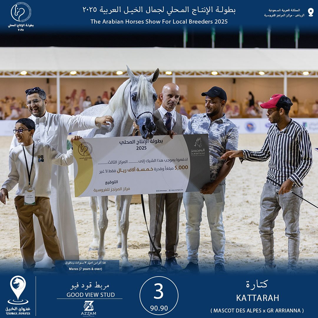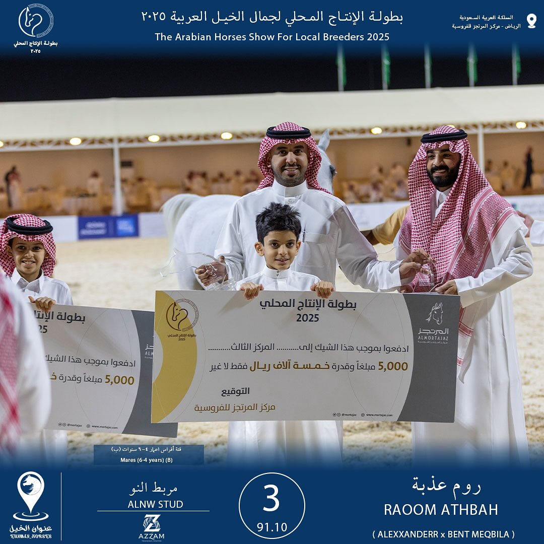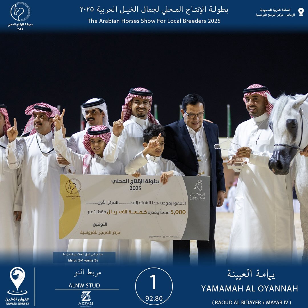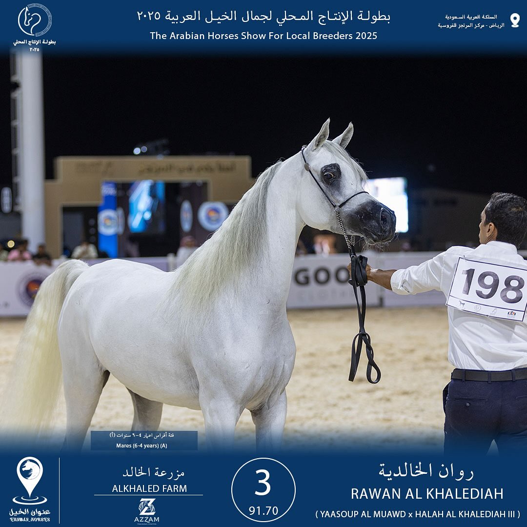ومن المقرر أن تختتم فعاليات البطولة اليوم السبت بإعلان النتائج النهائية وتتويج الفائزين في مختلف الفئات، بعد ثلاثة أيام حافلة بالمنافسات والعروض اليومية المفتوحة للجمهور، بالإضافة إلى البرامج التثقيفية حول سلالات الخيول العربية والأنشطة الترفيهية المصاحبة للعائلات والزوار.
