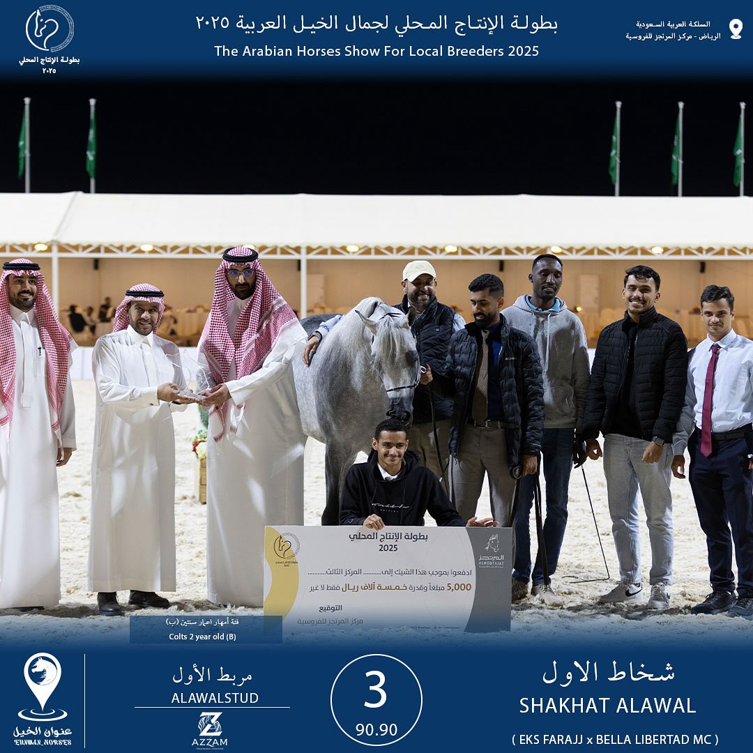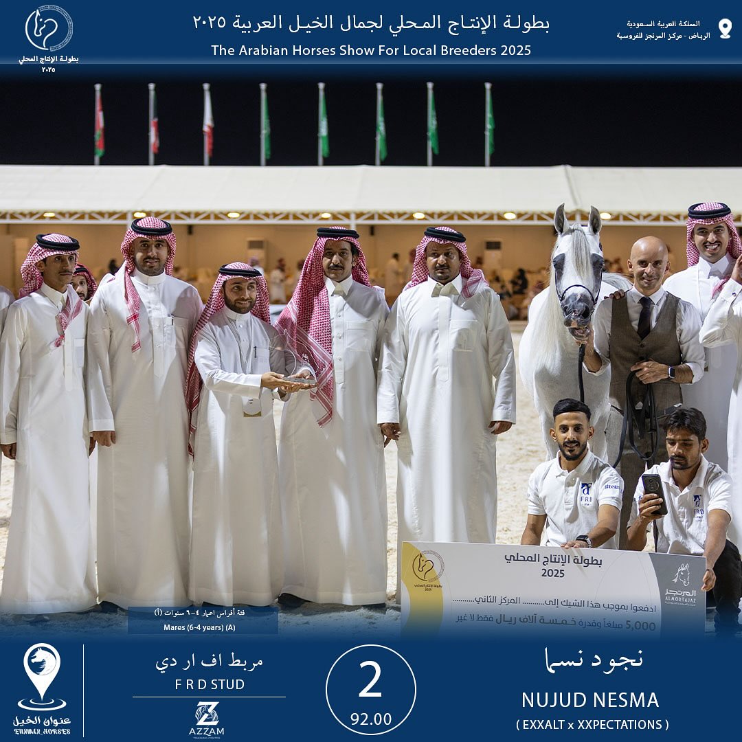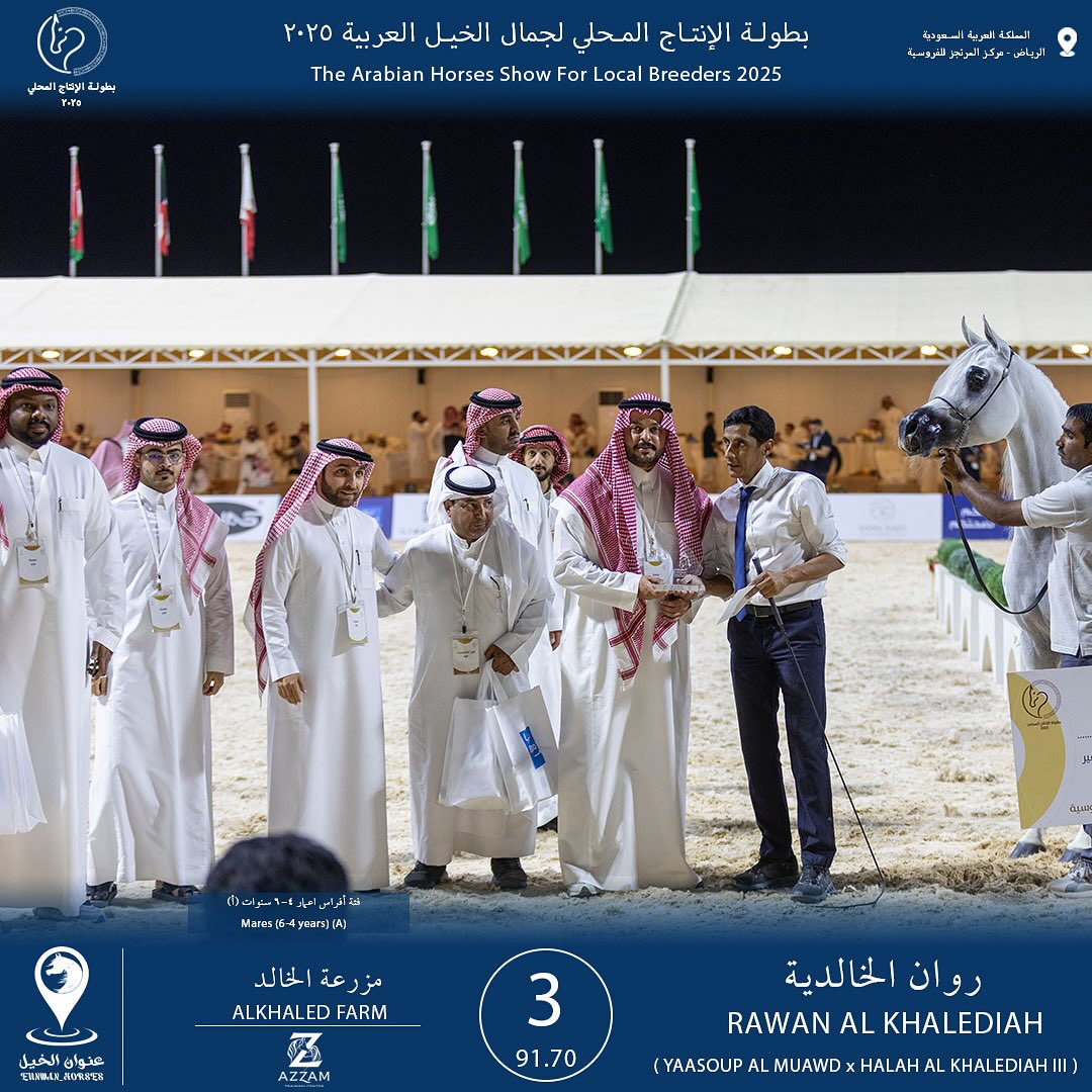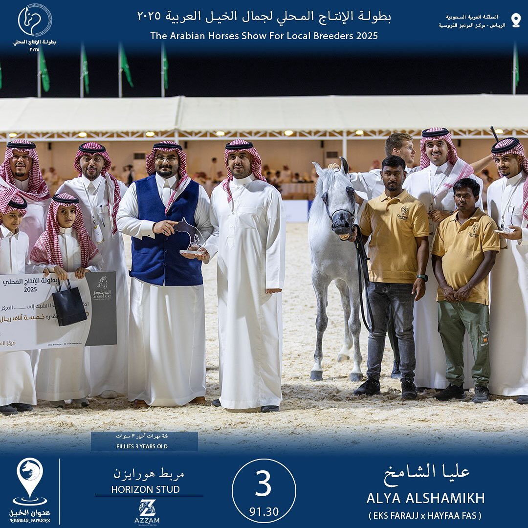 تواصلت مساء الجمعة الموافق 24 أكتوبر 2025، فعاليات اليوم الثاني من بطولة الإنتاج المحلي لجمال الخيل العربية الأصيلة في نسختها لعام 2025، والتي انطلقت أمس الخميس في مركز المرتجز للفروسية بمدينة الرياض، تحت رعاية كريمة من صاحب السمو الملكي الأمير فيصل بن بندر بن عبدالعزيز أمير منطقة الرياض.