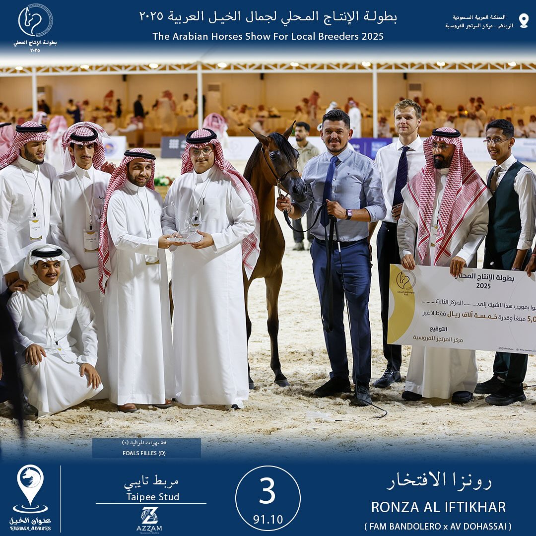 انطلقت أمس الخميس الموافق 23 أكتوبر 2025، فعاليات بطولة الإنتاج المحلي لجمال الخيل العربية الأصيلة في نسختها لعام 2025، وذلك في مركز المرتجز للفروسية بمدينة الرياض، تحت رعاية كريمة من صاحب السمو الملكي الأمير فيصل بن بندر بن عبدالعزيز أمير منطقة الرياض.